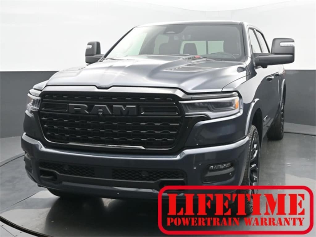 Limited Level An Equipment Group (12-Way/1-Way Trailer Connector, 14.4" Touchscreen Display, 240 Amp Alternator, 4G LTE Wi-Fi Hot Spot, Apple CarPlay, Connected Travel & Traffic Services, Connectivity - US/Canada, Disassociated Touchscreen Display, Drowsy Driver Detection, Evasive Steer Assist, Exterior 115V AC Outlet, Global Telematics Box Module (TBM), Google Android Auto, GPS Antenna Input, GPS Navigation, Hands-Free Active Driving Assist System, HD Radio, Heads-Up Display, Integrated Center Stack Radio, Integrated Voice Command w/Bluetooth, Intersection Collision Assist System, LED CHMSL Lamp, Radio: Uconnect 5 Nav w/14.4" Display, RamBox Cargo Management System, SiriusXM Radio Service, SiriusXM w/360L, Smartphone As A Key Capable, Surround View Camera System, Traffic Sign Recognition, Tri-Fold Tonneau Cover, and USB Host Flip), Night Edition (Accent Color Door Handles, Accent Color Premium Power Mirrors, Accent Color Tailgate Handle, Auto Power-Folding Mirrors, Auto-Dimming Exterior Driver Mirror, Black Day Light Opening Moldings, Black Exterior Truck Badging, Black Grille Surround Texture 7 Black, Black Headlamp Bezels, Black Painted Exterior Mirrors Caps, Black Tail Lamp Bezels, Body Color Front Bumper, Body Color Rear Bumper w/Step Pads, Convex Wide-Angle Exterior Mirror Insert, Dual Exhaust w/Black Tips, Exterior Mirrors Courtesy Lamps, Exterior Mirrors w/Heating Element, Exterior Mirrors w/Memory, Exterior Mirrors w/Supplemental Signals, Pirelli Brand Tires, RAM Grille Badge - Black, Sport Performance Hood, and Wheels: 22" x 9" Premium Black Aluminum), Quick Order Package 22M Limited, Trailer Tow Group (Trailer Brake Control, Trailer Light Check, Trailer Reverse Steering Control, and Trailer Tire Pressure Monitoring System), 19 Speakers, 3.92 Rear Axle Ratio, 4-Wheel Disc Brakes, ABS brakes, Active Noise Control System, Adjustable pedals, Air Conditioning, Alloy wheels, AM/FM radio, Apple CarPlay/Android Auto, Audio memory, Auto High-beam Headlights, Auto-dimming door mirrors, Auto-Dimming Exterior Passenger Mirror, Auto-dimming Rear-View mirror, Auto-leveling suspension, Automatic temperature control, Black Exterior Mirrors, Black Power-Fold Trailer Tow Mirrors, Bodyside moldings, Brake assist, Bumpers: chrome, Chrome Exterior Mirrors, Compass, Delay-off headlights, Dome Dual LED Reading Lamp, Driver door bin, Driver vanity mirror, Dual front impact airbags, Dual front side impact airbags, Dual-Pane Panoramic Sunroof, Electronic Stability Control, Exterior Parking Camera Rear, Forward & Reverse Utility Lights, Front anti-roll bar, Front Bucket Seats, Front Center Armrest w/Storage, Front dual zone A/C, Front fog lights, Front reading lights, Front wheel independent suspension, Fully automatic headlights, Garage door transmitter, Genuine wood console insert, Genuine wood dashboard insert, Genuine wood door panel insert, Heated door mirrors, Heated front seats, Heated rear seats, Heated steering wheel, Illuminated entry, Leather steering wheel, LED Dome/Reading Lamp, Low tire pressure warning, Manufacturer's Statement of Origin, Memory seat, Mirror Clearance/Running Lights, Navigation System, Occupant sensing airbag, Outside temperature display, Overhead airbag, Overhead console, Panic alarm, Passenger door bin, Passenger vanity mirror, Pedal memory, Power door mirrors, Power driver seat, Power passenger seat, Power steering, Power Telescoping Mirrors, Power windows, Power-Adjustable Convex Aux Mirrors, Premium Quilted Leather Bucket Seats, Radio data system, Radio: Uconnect 5 Nav w/12.0" Display, Rain sensing wipers, Rear anti-roll bar, Rear reading lights, Rear seat center armrest, Rear step bumper, Rear window defroster, Remote keyless entry, Security system, Speed control, S Price includes: $2000 - 2026 National Retail Consumer Cash . Exp. 12/01/2025 Price includes $997 of deale